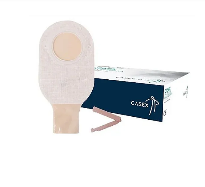 Descrição do produto: Bolsa para colostomia/ileostomia sistema de 2 peças, consiste de um, bolsa contendo filme em tríplice camada EVA/PVDC/EVA com barreira anti-odor podendo ser opaco, tela protetora de pele microperfurada. Placa de fixação da bolsa em resina sintética hidrocoloide composta de carboximetilcelulose de sódio, gelatina, pectina, poliisobutileno. *A placa deverá ser adquirida separadamente de acordo com o tamanho do flange.