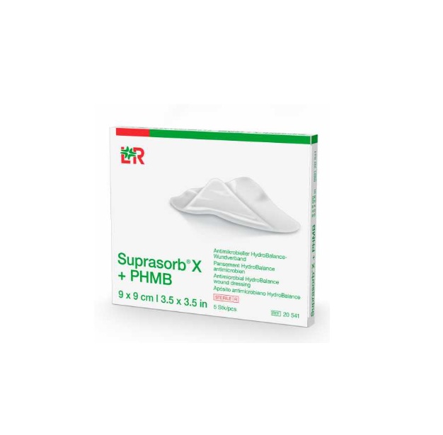 A tecnologia HydroBalance garante o controle da umidade. Se a lesão apresentar excesso de umidade, o Suprasorb® X + PHMB irá absorver o exsudato. Se a lesão estiver seca, irá promover umidade no local. Sua composição de celulose permite uma excelente conformação, sendo possível sua aplicação nos locais de maior dificuldade de aplicação de curativo. Não aderem à ferida e o ambiente úmido que ele proporciona, causa uma sensação agradável e calmante aos pacientes. Minimiza dor.