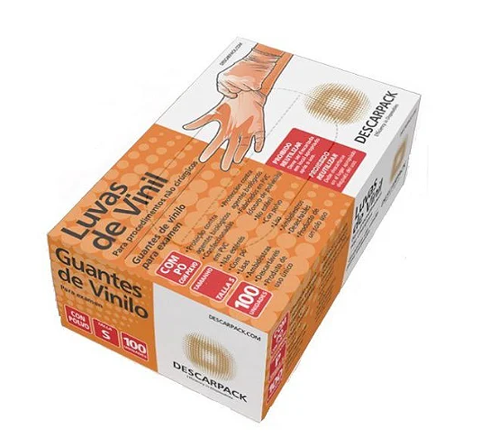 Luva de Vinil com Pó C/ 100 Unidades Tam: P - Descarpack
