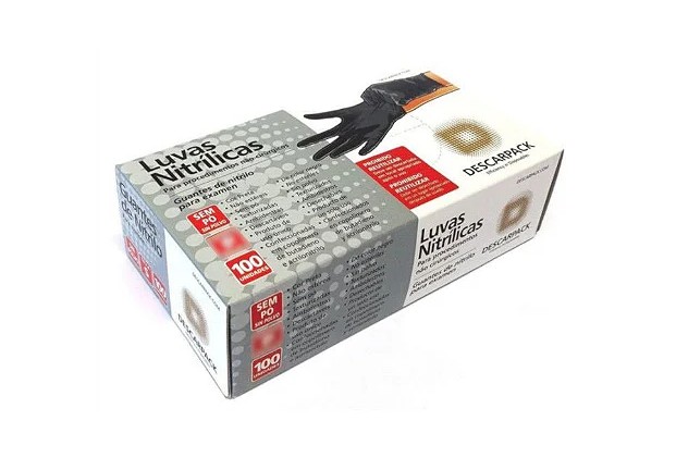 Luva Nitrílica Preta S/Pó C/100 Tam: P - Descarpack