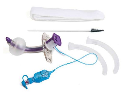 Cânula de traqueostomia em PVC termossensível, transparente linha radiopaca, balão piloto com informação de ID e pressão do cuff, cuff soft seal, possui sonda de aspiração acoplada a cânula, permitindo a aspiração de secreções supra cuff diminuindo o risco de PAV. Acompanha duas innercânulas. Tempo de permanência 29 dias. O código 100.870 acompanha fixador, 2 endocânulas, escova e fio guia.